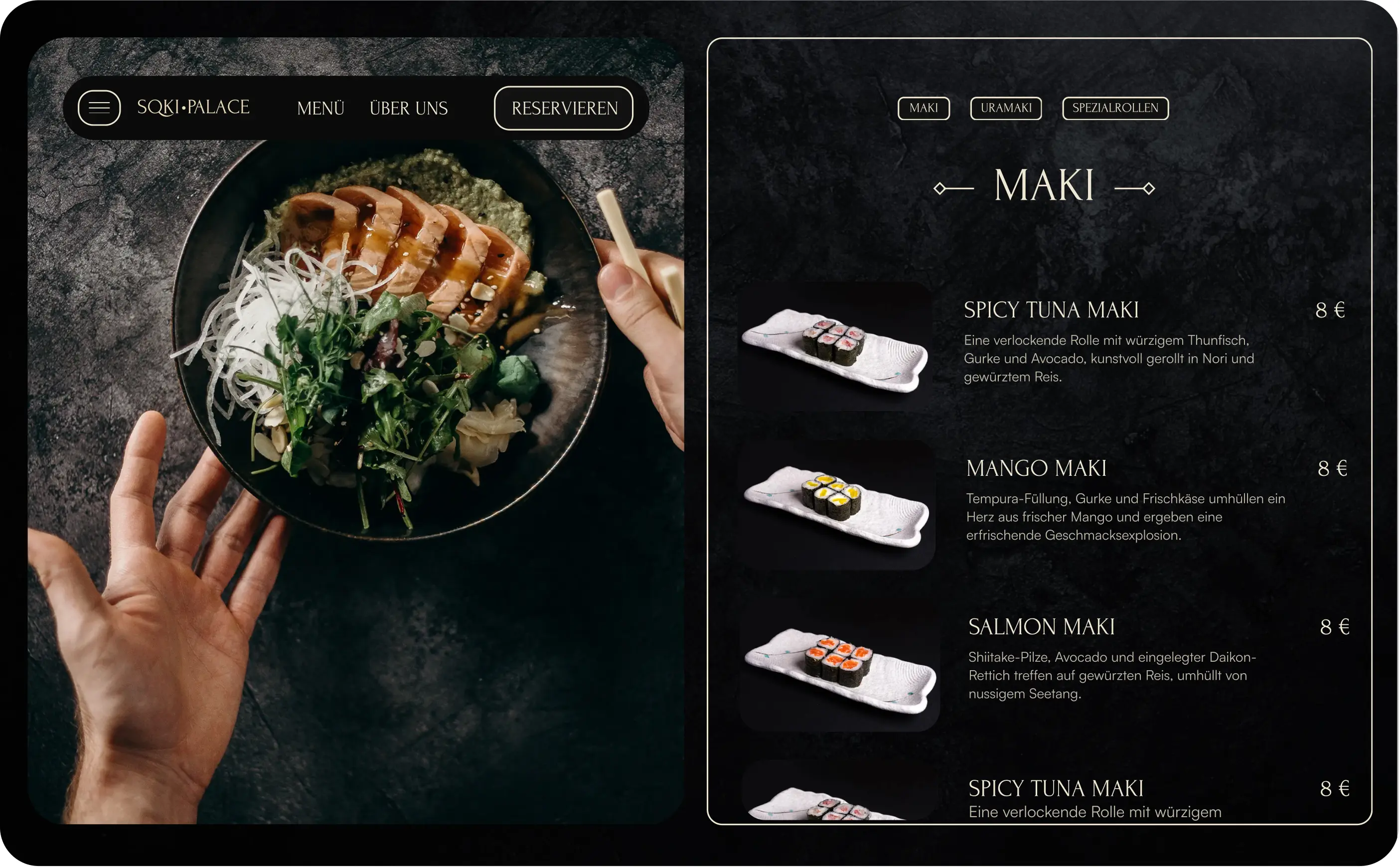Entstanden ist ein moderner, kreativer Brand-Look mit starken Bildern und einer Website, die den Anspruch der Sushi-Bar greifbar macht. Das Design wirkt hochwertig, mutig und unverwechselbar und schafft eine klare Positionierung vor dem Go-Live.